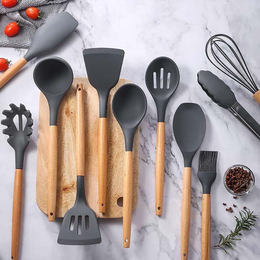 Ez a 14 részes konyhai eszközkészlet ideális választás mindennapos főzéshez és tálaláshoz. A hőálló szilikon fejek nem karcolják az edényeket, a mellékelt fakanáltartó pedig segít rendben tartani a konyhát. Kezdőknek és gyakorlott szakácsoknak egyaránt tökéletes választás.