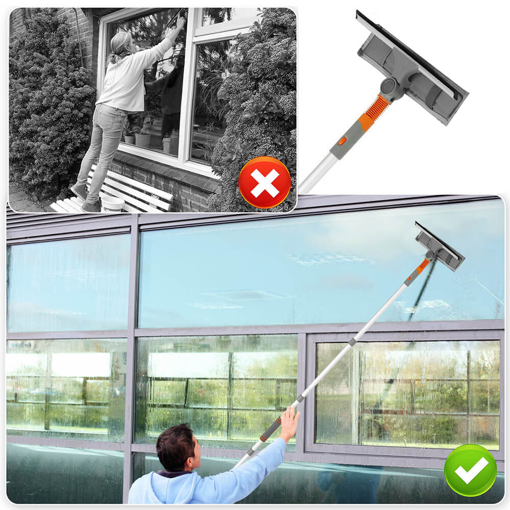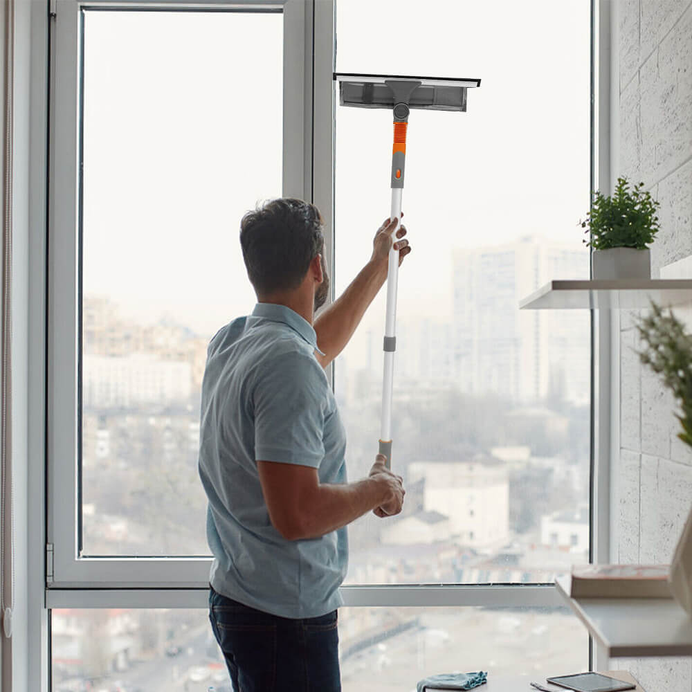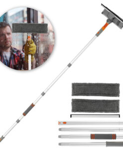 Az akár 163 cm hosszúságú teleszkópos nyéllel könnyedén elérheted a magasabb ablakokat, csempéket vagy más sima felületeket. Az előre és hátra hajlítható, 180 fokban dönthető fej tovább növeli a szett sokoldalúságát és kényelmes használatát.