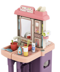 A játékkonyha és fürdőszoba egyedi megoldásként egyesíti a két legnépszerűbb szerepjátékot. Az egyik oldal konyhaként szolgál, ahol a gyerekek elkészíthetik „ételeiket”, míg a másik oldal a fürdőszobai kiegészítők világába vezeti őket. Ez a kombináció lehetővé teszi, hogy egyszerre fejlődjenek a kreativitás, a kézügyesség és a napi rutinok ismeretei.
