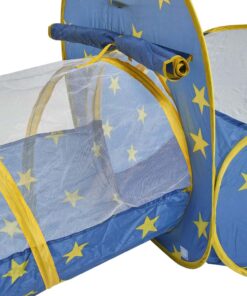 A 3 részből álló játszósátor szett két különböző méretű sátorból és egy mászóalagútból áll. A sátorban való bujkálás és alagúton való átmászás garantáltan leköti a kicsik figyelmét hosszú időre.