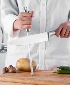 A praktikus, forgatható állvány segít rendben tartani a késeket, miközben gyors hozzáférést biztosít bármelyikhez. Kis helyigényű, csupán 15 cm átmérőjű, így a pulton is könnyedén elfér. Ideális választás kisebb konyhákba is.
