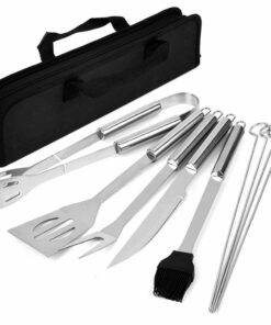 A 9 részes grill eszköz szett ideális társ kerti grillezéshez, nyaraláshoz vagy kirándulásokhoz. Tartós, rozsdamentes acélból készült eszközei könnyen tisztíthatók, cipzáras táskájának köszönhetően pedig egyszerűen szállíthatók. Így bárhol profi módon készítheted el a kedvenc grill ételeidet.