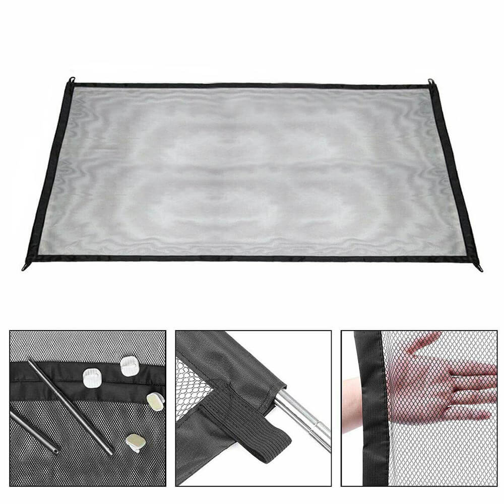 A csomagban található öntapadós kampók segítségével a háló könnyedén felszerelhető falra vagy ajtófélfára. A merevítőrudak biztosítják a kifeszített tartást, így stabil védelmet nyújtanak.