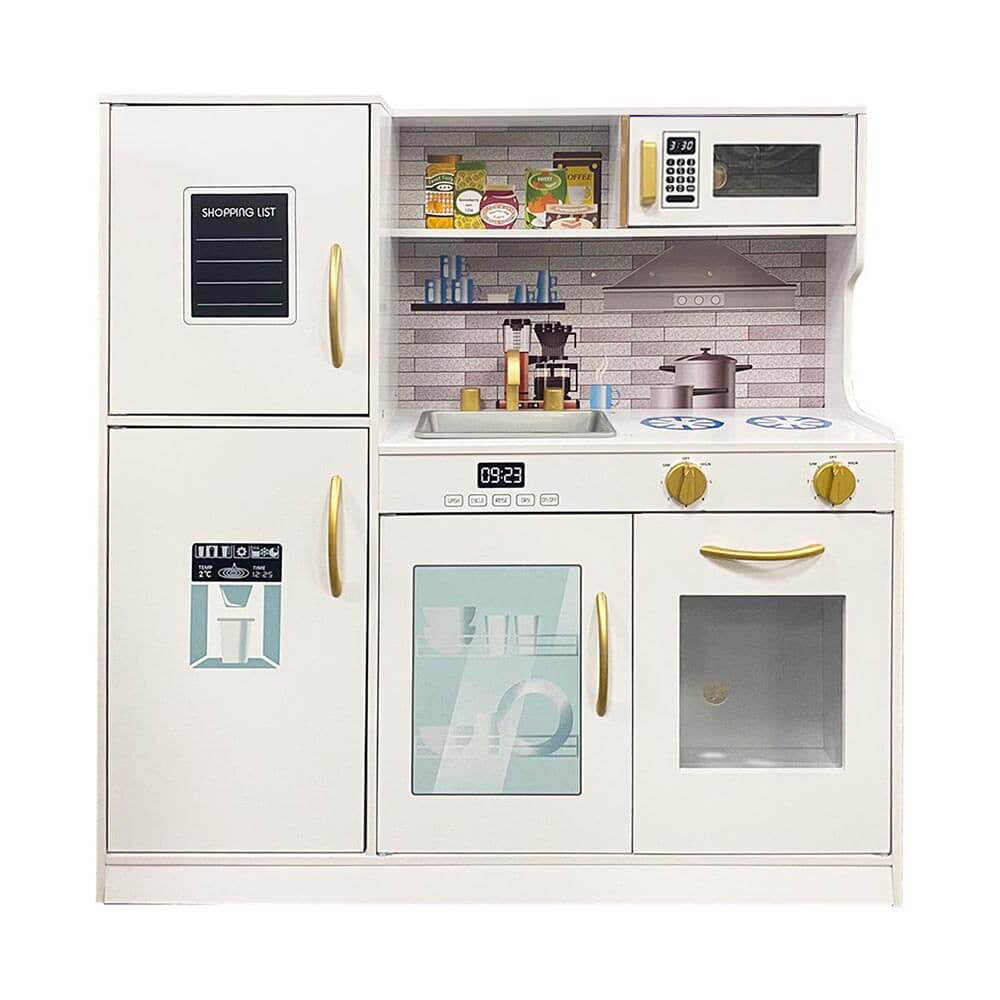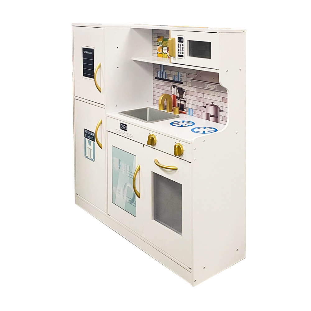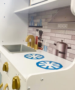A játékkonyha kialakítása hűen tükrözi egy igazi konyha részleteit, így a gyerekek a valódi főzéshez hasonló játékélményt élhetnek át. A kiegészítők – mint a serpenyő, lábas és merőkanalak – tovább fokozzák az interaktivitást, és ösztönzik a szerepjátékot.
