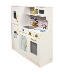 Ez a gyönyörűen kidolgozott fa játékkonyha tökéletes választás a kis séfek számára! Valósághű kialakításának és gazdag kiegészítőinek köszönhetően a gyermekek belemerülhetnek a főzés izgalmas világába, miközben fejlődik kreativitásuk és finommotorikus készségük. Masszív szerkezete és biztonságos kialakítása garantálja a gondtalan játékélményt!