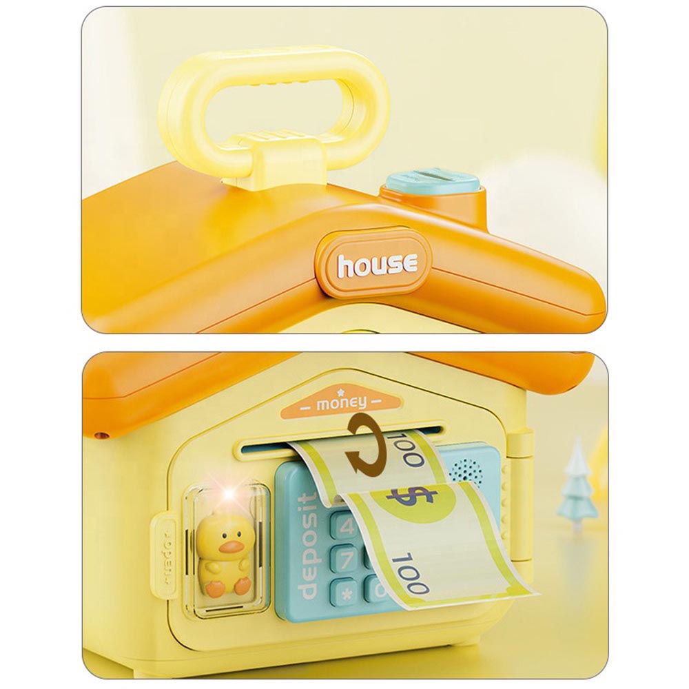 A persely hangeffekt kíséretében automatikusan beszippantja a bankjegyeket, akár egy igazi pénzautomata. A gyermekek saját számkódot állíthatnak be, így játékosan megtanulhatják a biztonságos pénzkezelés alapjait.