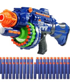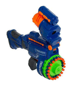 Éld át a csatatér izgalmait ezzel a hatalmas, 56 cm-es játékfegyverrel, amely valósághű hanghatásokkal teszi még élvezetesebbé a játékot! A 20 töltényes forgótár gyors és dinamikus lövöldözést biztosít, miközben a csomagban összesen 80 lövedék található – 40 db sima és 40 db ajándék tapadókorongos töltény, hogy minden helyzetben megtaláld a tökéletes lövést! A fegyver kék és szürke színben elérhető, így kiválaszthatod a kedvencedet!