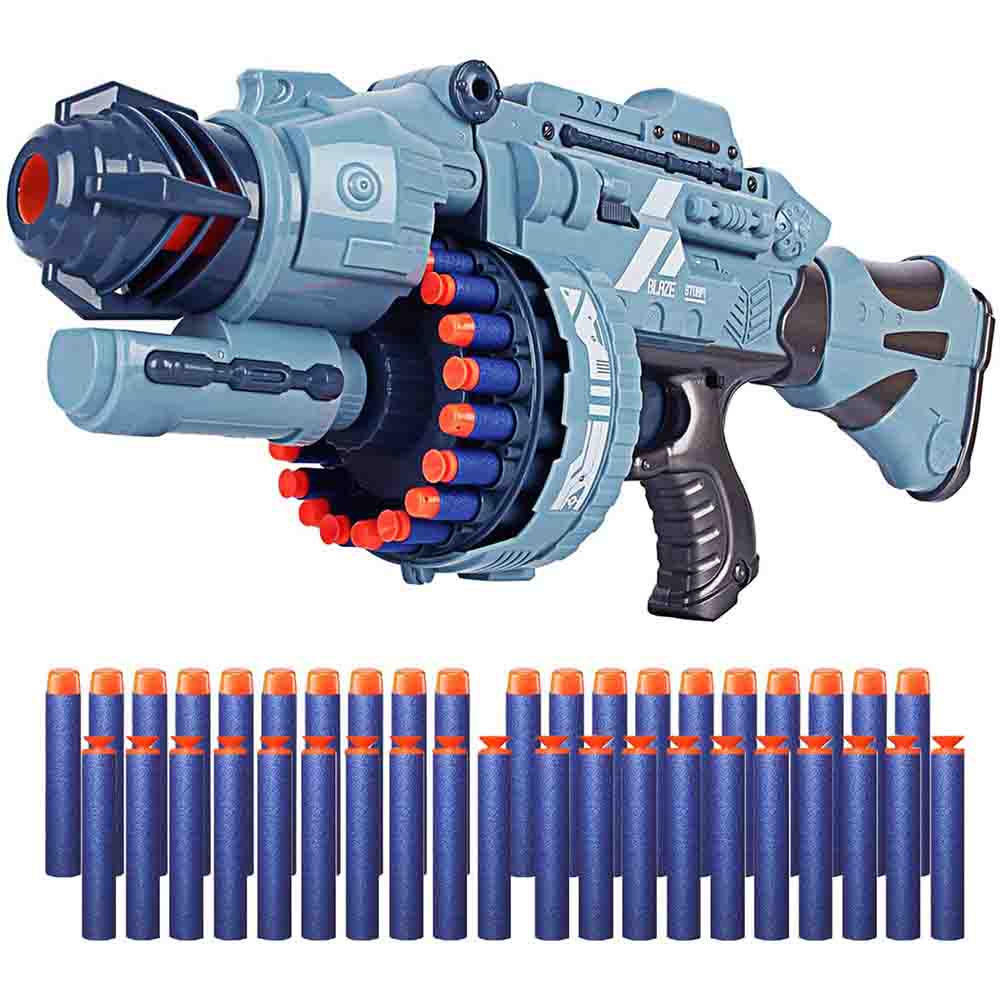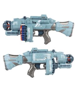 Éld át a csatatér izgalmait ezzel a hatalmas, 56 cm-es játékfegyverrel, amely valósághű hanghatásokkal teszi még élvezetesebbé a játékot! A 20 töltényes forgótár gyors és dinamikus lövöldözést biztosít, miközben a csomagban összesen 80 lövedék található – 40 db sima és 40 db ajándék tapadókorongos töltény, hogy minden helyzetben megtaláld a tökéletes lövést! A fegyver kék és szürke színben elérhető, így kiválaszthatod a kedvencedet!