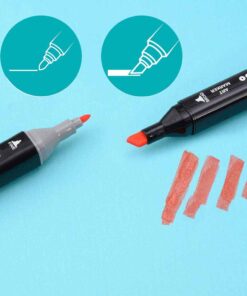 A markerek gyorsan száradó, alkoholbázisú tintával vannak feltöltve, amely sima, csíkmentes fedést biztosít. A kétféle hegy – egy finomabb a részletekhez és egy szélesebb a nagyobb területekhez – lehetővé teszi a precíz és hatékony rajzolást.