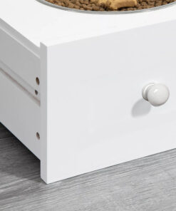 Ez a kisállat etetőállomás elegáns, fehér bútor formájában biztosítja kedvenced etetését, miközben harmonikusan illeszkedik a lakás berendezéséhez. A felső polcra dekoráció vagy használati tárgyak is helyezhetők, így nem csupán funkcionális, de látványos eleme is lesz otthonodnak.