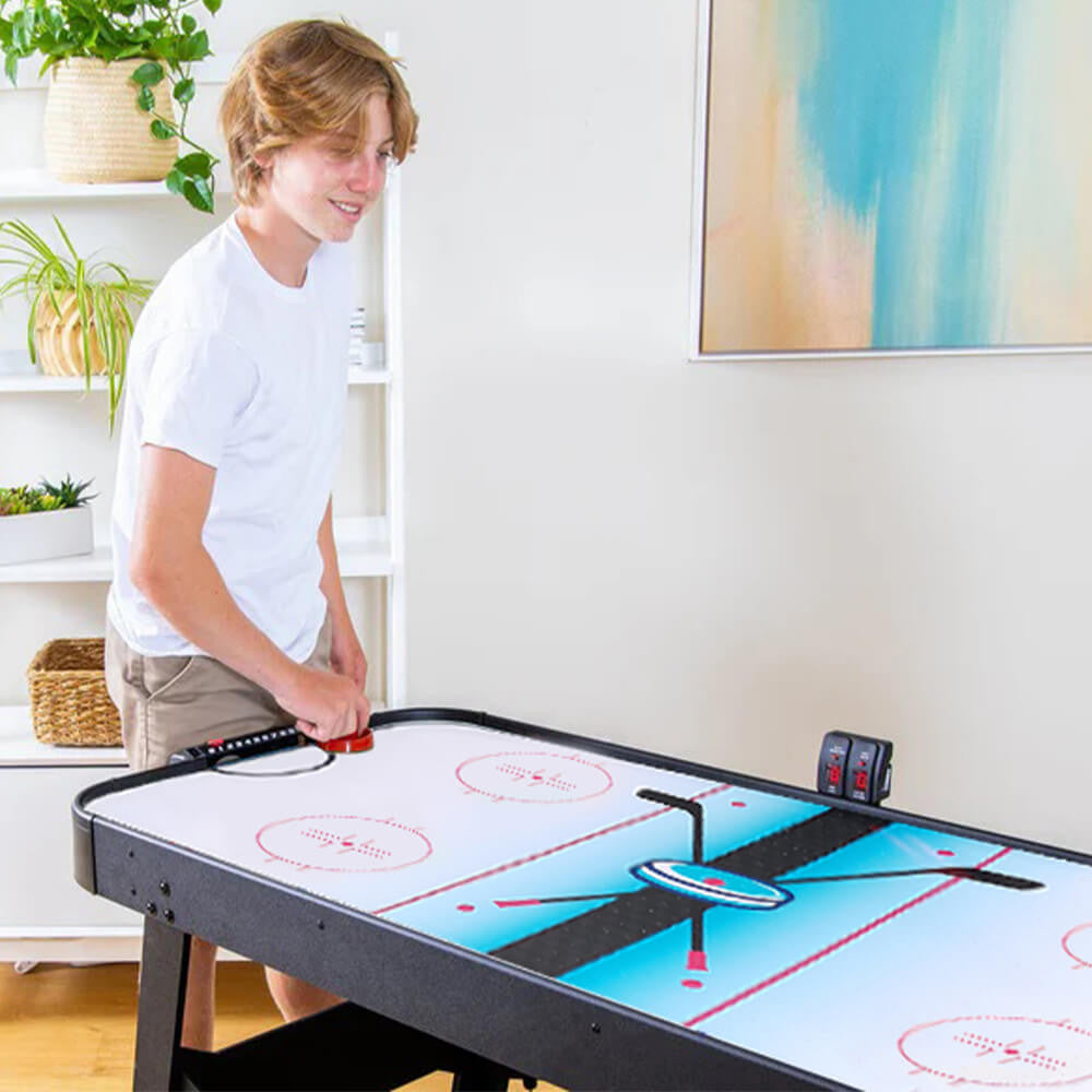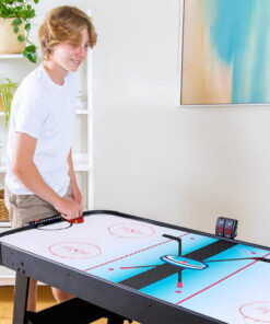 Szeretnéd feldobni a családi összejöveteleket vagy baráti esteket? A léghoki asztal garantáltan izgalmas és pörgős szórakozást nyújt minden korosztálynak! Modern és letisztult dizájnjának köszönhetően bármilyen helyiségben jól mutat, kompakt mérete révén pedig könnyedén elfér akár a nappalidban, akár a garázsban. A beépített digitális pontszámlálóval mindig nyomon követheted a játék állását, így csak a győzelemre kell koncentrálnod!