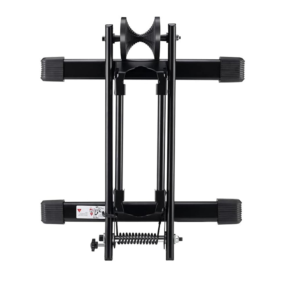 A stabil kialakítás és a strapabíró anyag garantálja, hogy a kerékpár biztonságban marad. Összecsukva kevés helyet foglal, mégis megbízható tartást biztosít nehezebb bringák számára is.