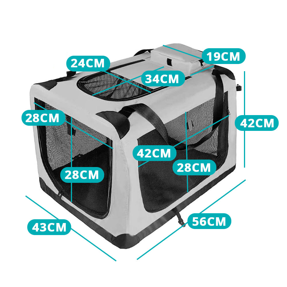 Az összehajtható kisállathordozó táska biztonságos és kényelmes megoldást kínál kisállatok szállítására utazások, állatorvosi látogatások vagy kirándulások során. Hálós ablakaival gondoskodik a megfelelő szellőzésről, praktikus zsebében pedig elférnek a fontos kiegészítők. Összehajtható kialakításának köszönhetően helytakarékosan tárolható, használaton kívül könnyedén elpakolható.