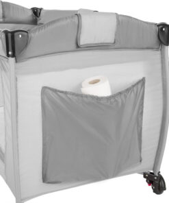 Az utazóágy oldalán lévő cipzározható kibújónyílás lehetővé teszi, hogy a nagyobb babák önállóan másszanak ki és be az ágyba, elősegítve ezzel önállóságukat és mozgásfejlődésüket. A két fékezhető kerék biztosítja a stabilitást és a könnyű mozgathatóságot, így a szülők egyszerűen áthelyezhetik az ágyat a lakás különböző pontjain. A strapabíró hálós oldalfalak biztosítják a megfelelő szellőzést és a baba könnyű megfigyelését.